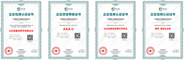 廣西冀桂川金屬結(jié)構(gòu)有限公司始終恪守“誠(chéng)實(shí)經(jīng)營(yíng)、質(zhì)量保障、信譽(yù)至上、價(jià)格合理、合作共贏”的宗旨,嚴(yán)格按照ISO質(zhì)量體系認(rèn)證標(biāo)準(zhǔn),為客戶提供系統(tǒng)的技術(shù)支持和施工建議,有效的為客戶解決難題,竭誠(chéng)為客戶提供更優(yōu)質(zhì)滿意的工程。